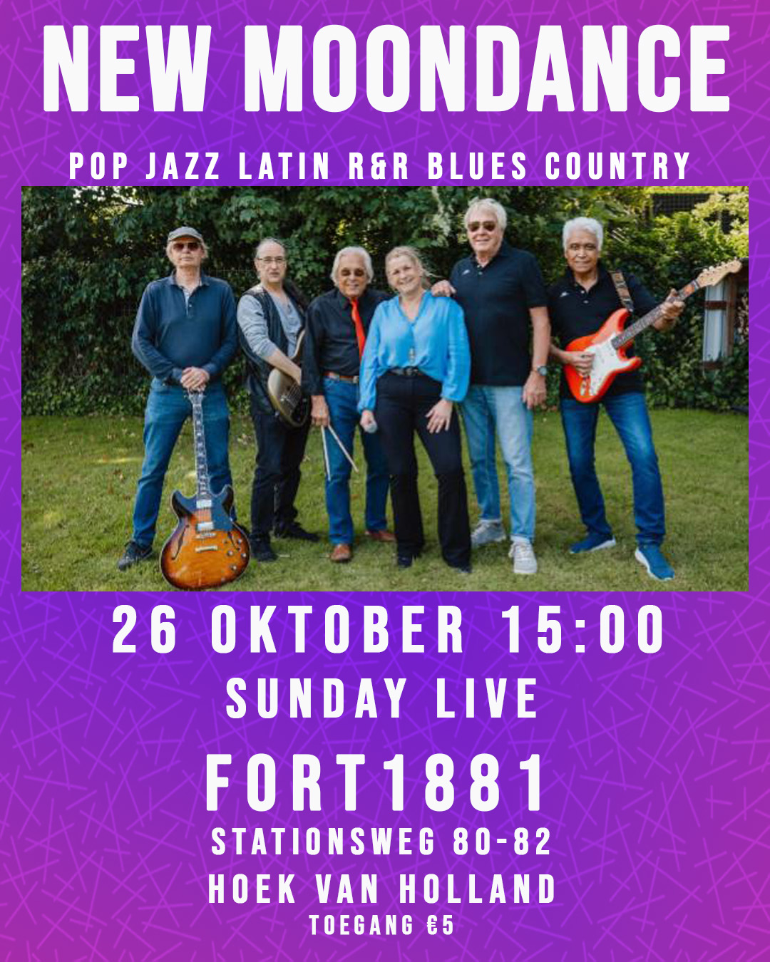 New Moondance is een band met lef, wij spelen nummers waar niet iedere band zich aan waagt. Covers uit de jaren 60 tot nu, pop met zo af en toe een latin of jazzy sausje van Santana tot Van Morrison, van Vaya Con Dios tot Fleetwood Mac, Sade en Billy Joel. Dat kan alleen maar met ervaren muzikanten, en dat zijn wij, gepokt en gemazeld in bands als Sandy Coast, Knappe Mannen Band, Diva’s, Sissy & the Saints, Candlelight, Fresh Cream en Crossroads.